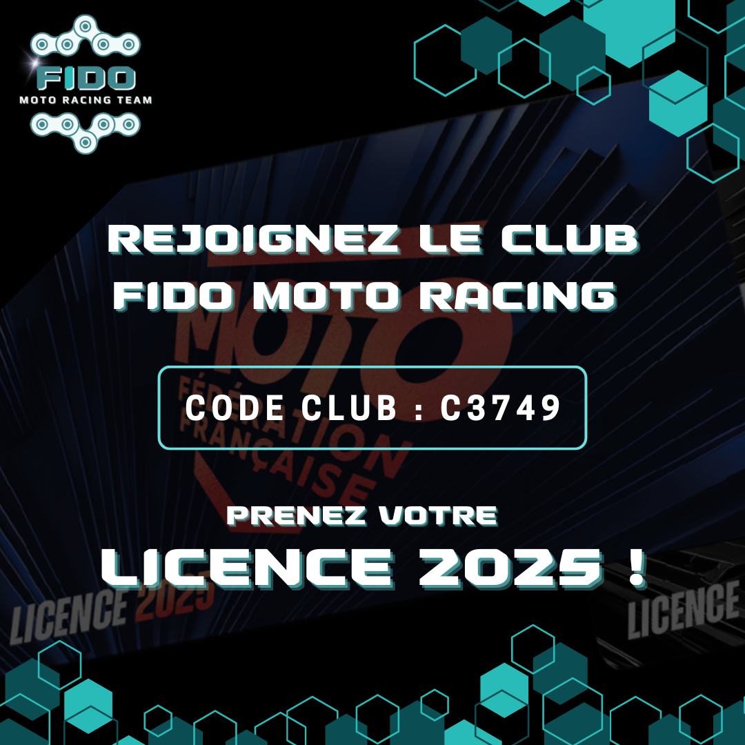Vous serez automatiquement rattaché à Fido Moto Racing et pourrez porter fièrement nos couleurs en compétition ! -